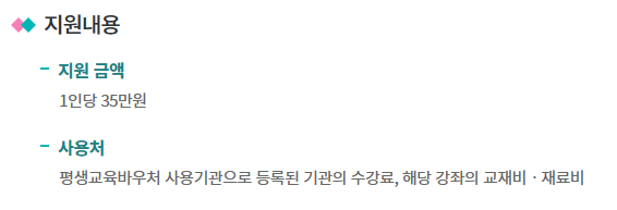평생교육 강좌의 수강료와 교재비등 연 35만원까지 사용할 수 있는데 우수이용자에게 2023년 하반기에 35만원을 추가로 재충전해준다고 합니다.