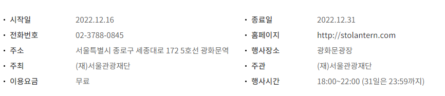 | ■ 2022 서울빛초롱축제 일정 정보 ■ 2022 서울빛초롱축제 정보 |