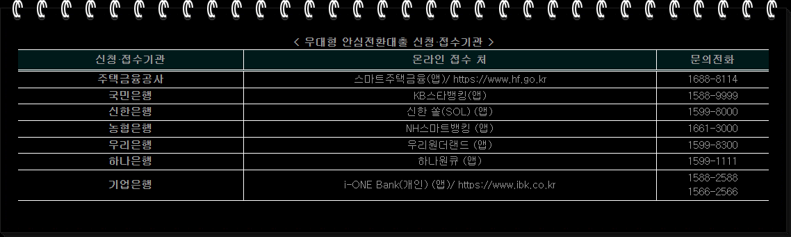 지금까지 특례 보금자리론과 특례 보금자리론 금리, 특례 보금자리론 대출자격에 대해서 간단하게 알아보았습니다. 정부에서 최근에 규제지역완화와 재건축 요건완화등 얼어붙은 부동산 시장의 활성화를 위해 노력하고 있습니다. 가혹한 규제와 높은 대출금리, 치솟은 집값등으로 내집마련을 위한 실구매자들이 주택을 구입하기에 더욱 어려운 상황이되었습니다. 하지만 높은 금리상품을 이용중이신 분들과 내집마련을 계획하시고 계신분들은 실제금리보다저렴한 금리로 내집마련을 할 수 있는 기회일 수도 있지 않을 까 생각이 듭니다.